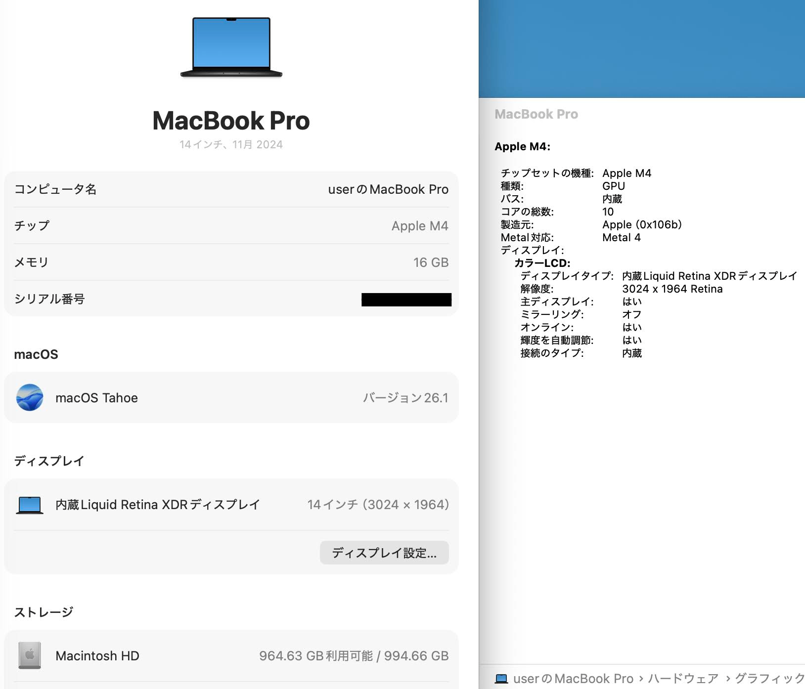 美品 MacBook Pro 14インチ 2024 M4 10コアCPU 10コアGPU 16GB 1TB 充放電回数4回 バッテリー最大容量100% 付属品完備 【C5520-80】