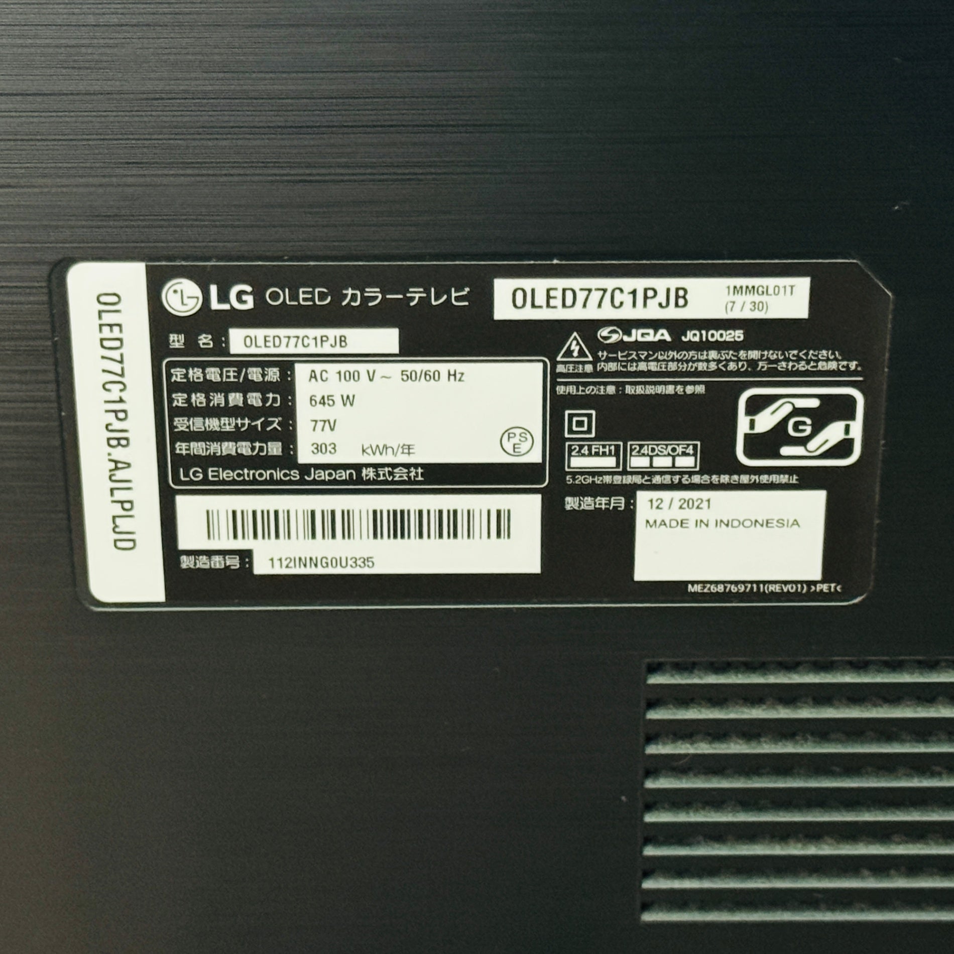 LG OLED/エレクトロニクス 4K有機ELテレビ 77型 OLED77C1PJB [77インチ] 2021年製【C6012】