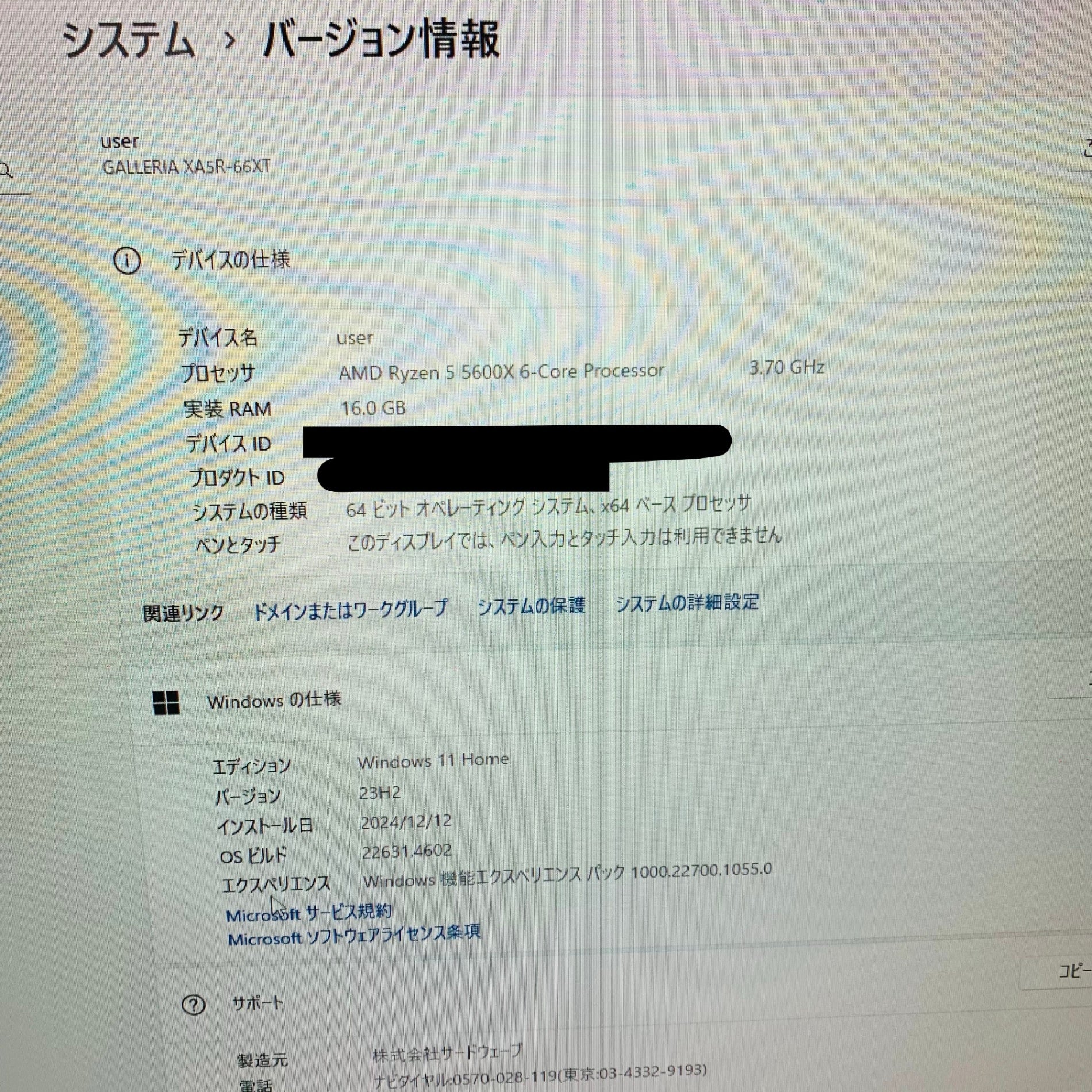 Thirdwave GALLERIA XA5R-66XT AMD Ryzen 5 5600X 16GB SSD 1TB RX 6600 【C1498-160】
