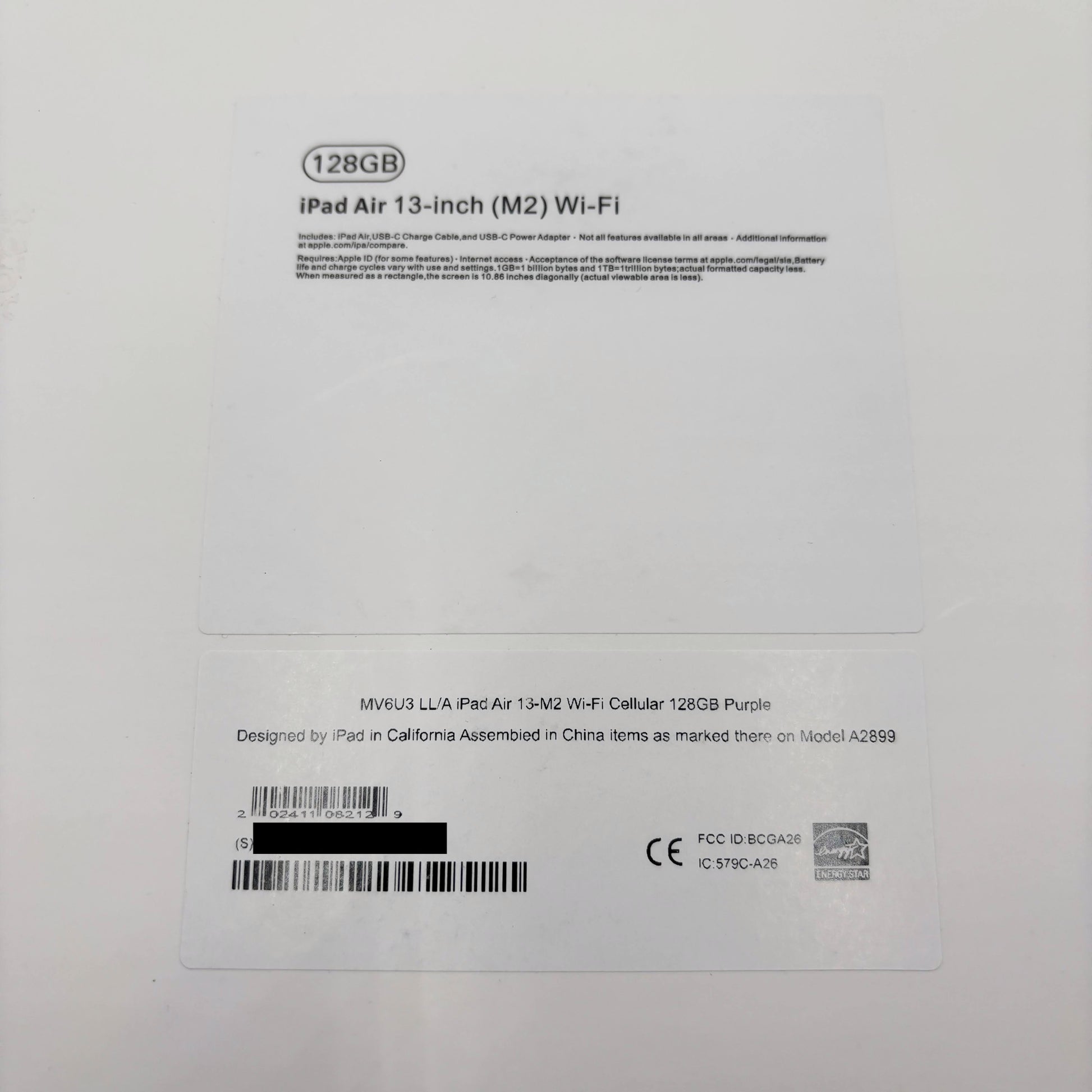 Apple iPad Air M2 13インチ Wi-Fi+Cellularモデル 128GB パープル 紫 MV6U3LL/A バッテリー最大容量100% SIMフリー【C5353-80】