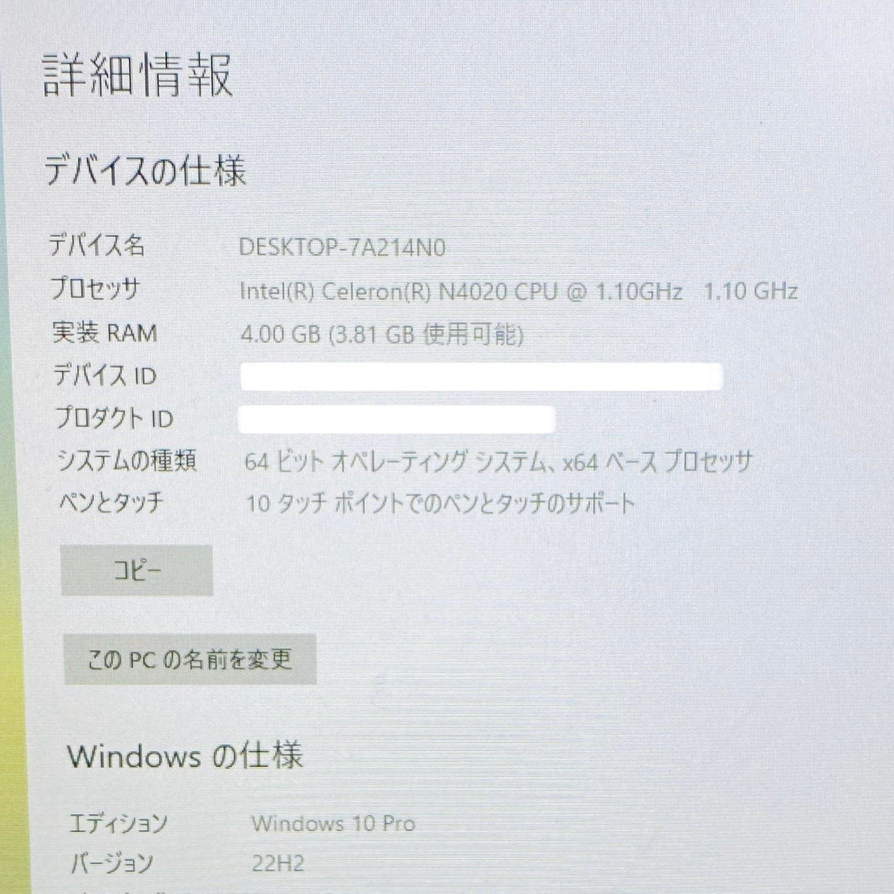 dynabook P1K1PPTG Celeron N4020 4GB 128GB 箱、充電器等付属 C2308 80サイズ発送