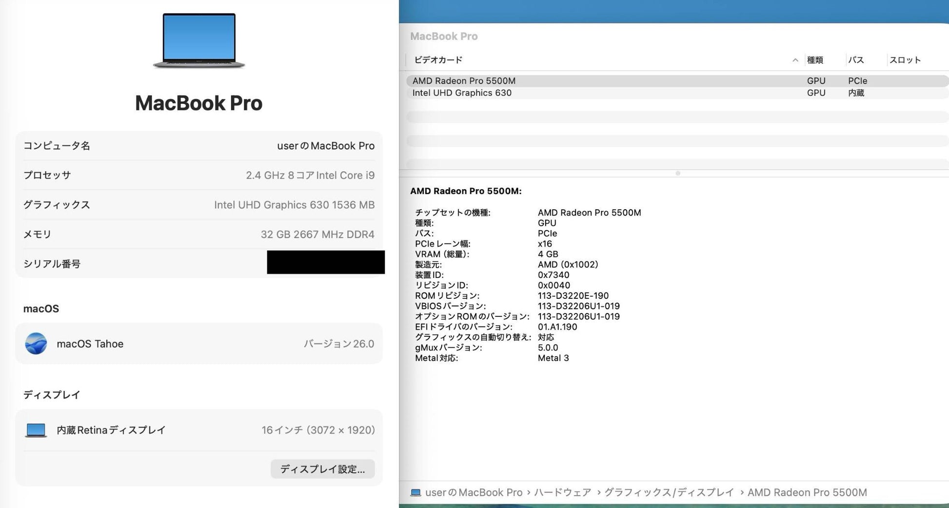 Apple MacBook Pro 2019 16インチ i9 32GB 1TB【C4759-80】