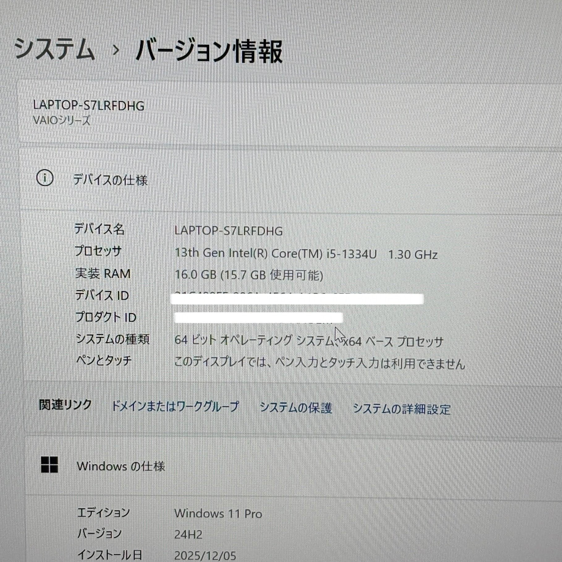 美品 VAIO F14 VJF1418 13th Gen Core i5-1334U 16GB SSD512GB ウォームホワイトWindows11 Pro バッテリー最大容量100%【C5611-80】