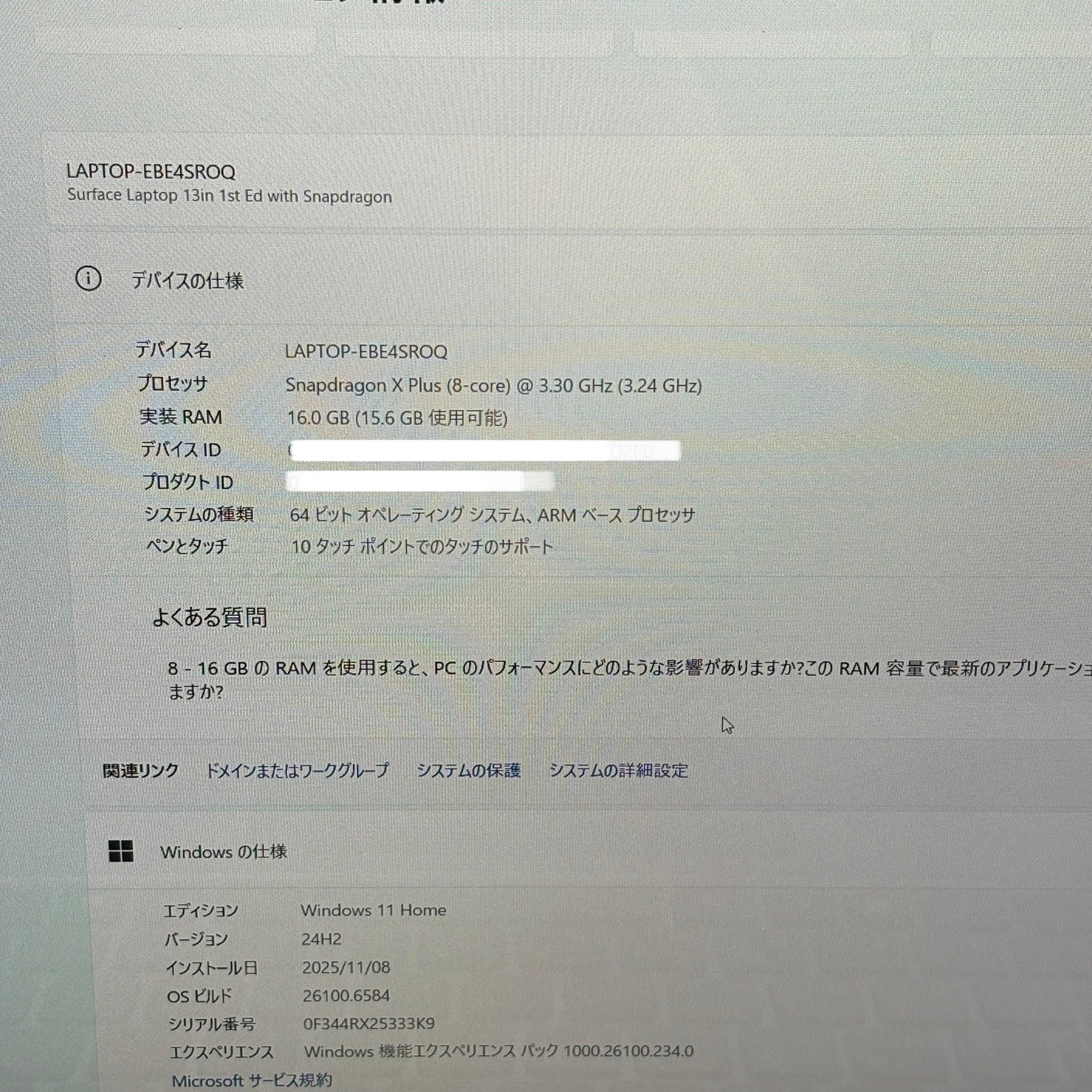 美品 surface laptop 13 snapdragon x plus 16GB SSD 512GB Windows11Home バッテリー最大容量100%【C5410-80】