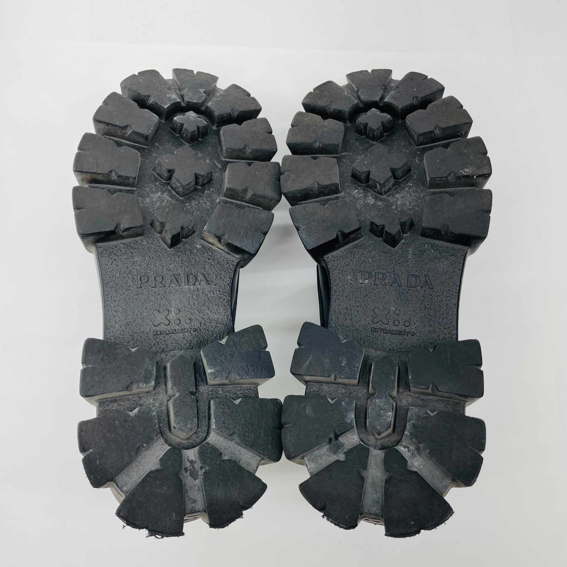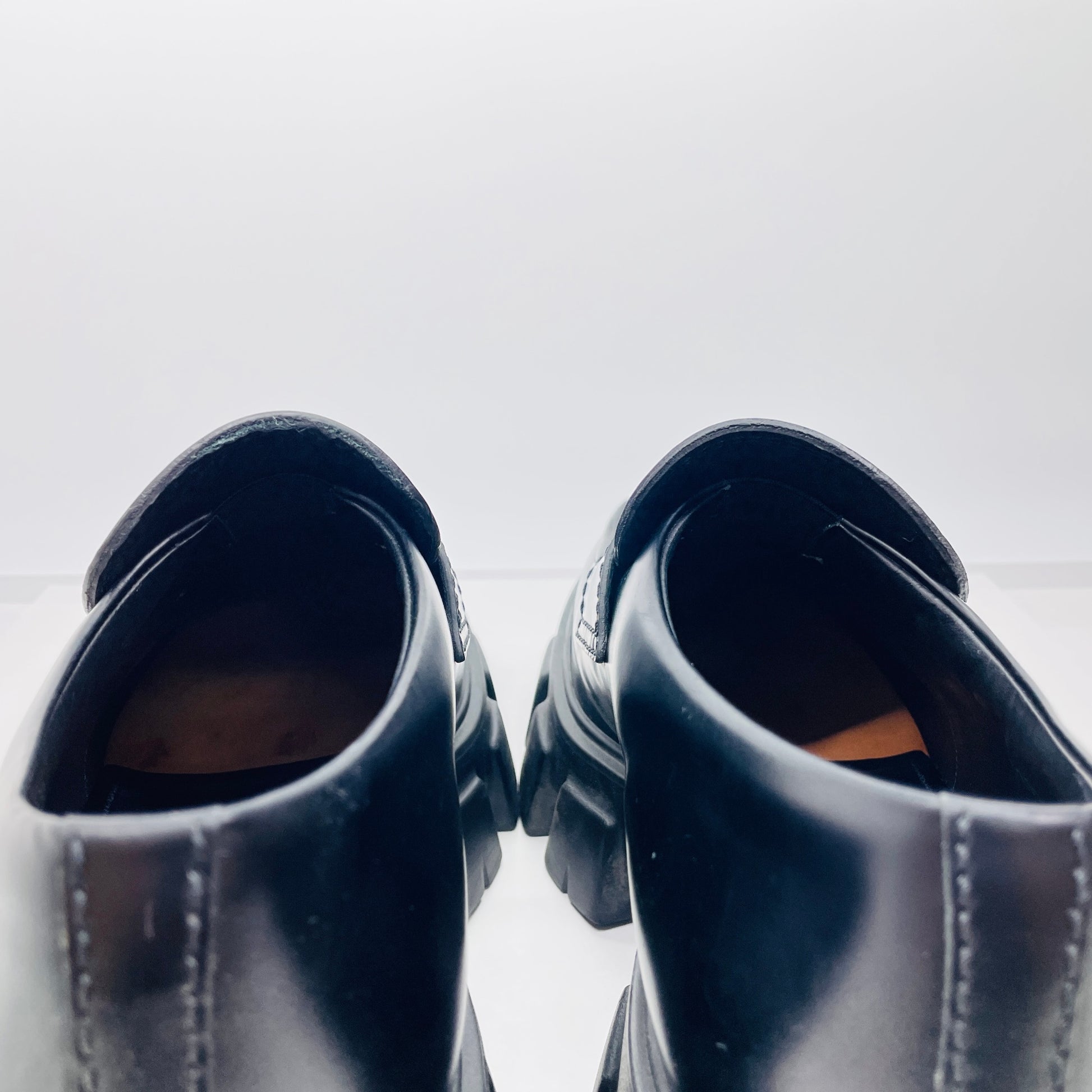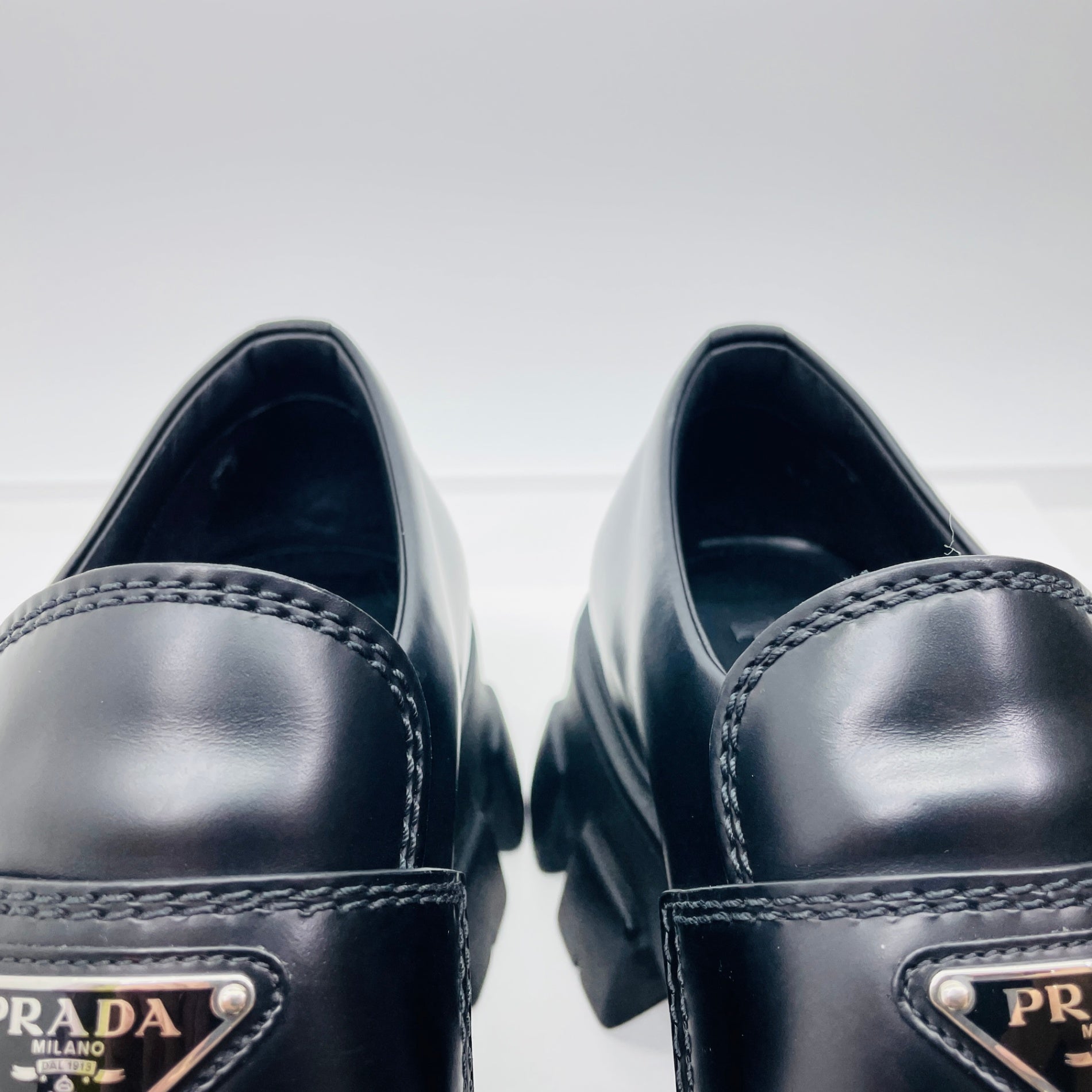 美品 PRADA プラダ ローファー モノリス ブラッシュドレザー サイズ:7.5(26.5cm相当)【C4597-100】