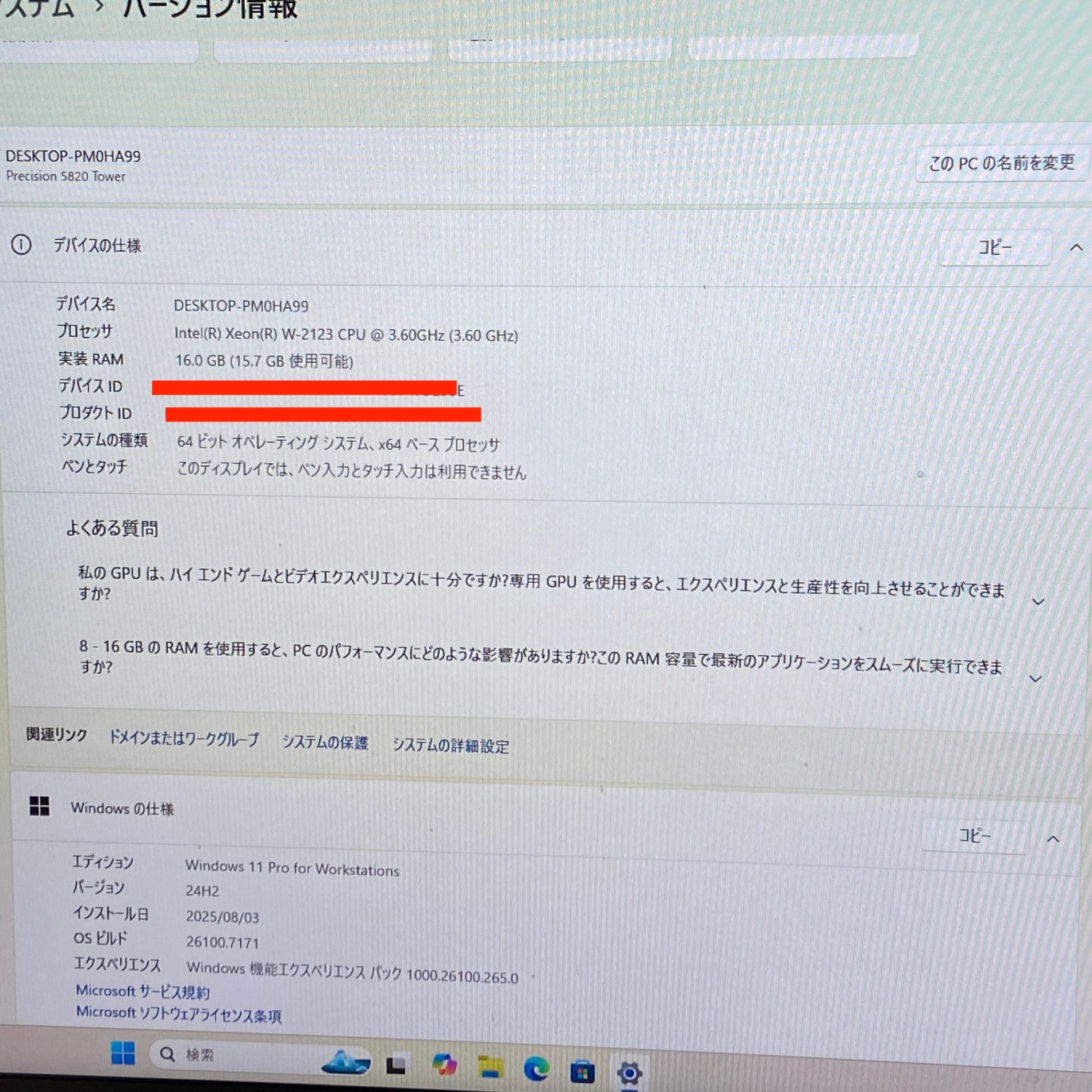 DELL Precision 5820 Tower Xeon W-2123 16GB SSD512GB HDD6TB(2TB×3) Quadro P2000 Windows11 Pro for Workstations【C4546-160】