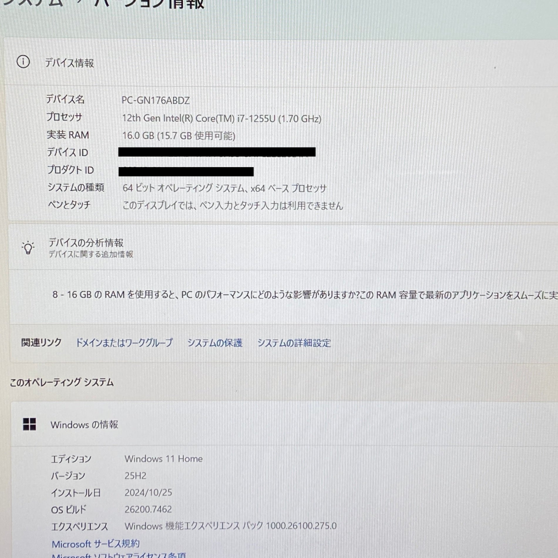 美品 LAVIE Direct N16 GN176A/BZ PC-GN176ABDZ i7-1255U 16GB SSD 256GB バッテリー最大容量96% サイクルカウント21回【C5662-80】