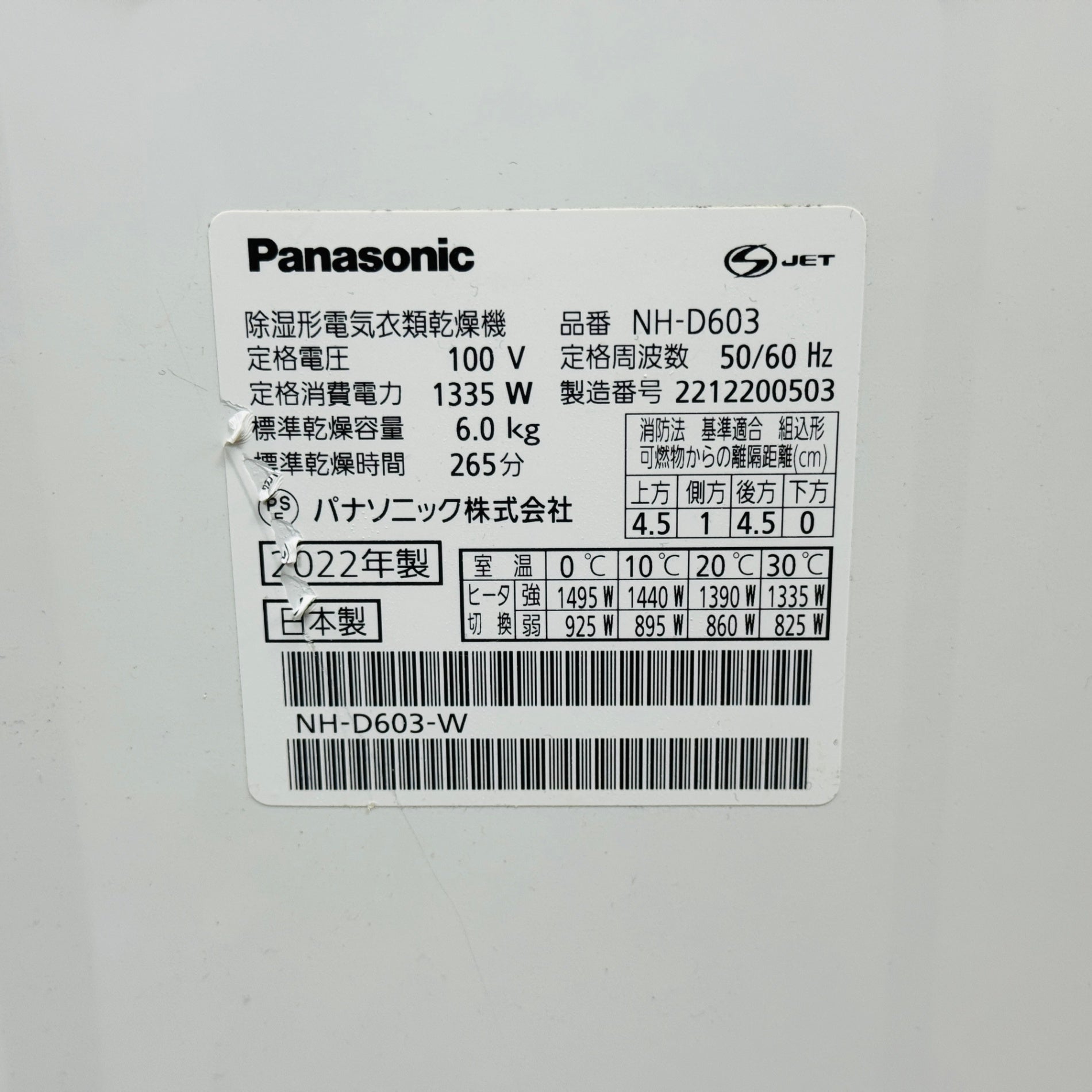 Panasonic パナソニック 電気衣類乾燥機 NH-D603 2022年製 ホワイト N-UF21 スタンド付属【C6016】