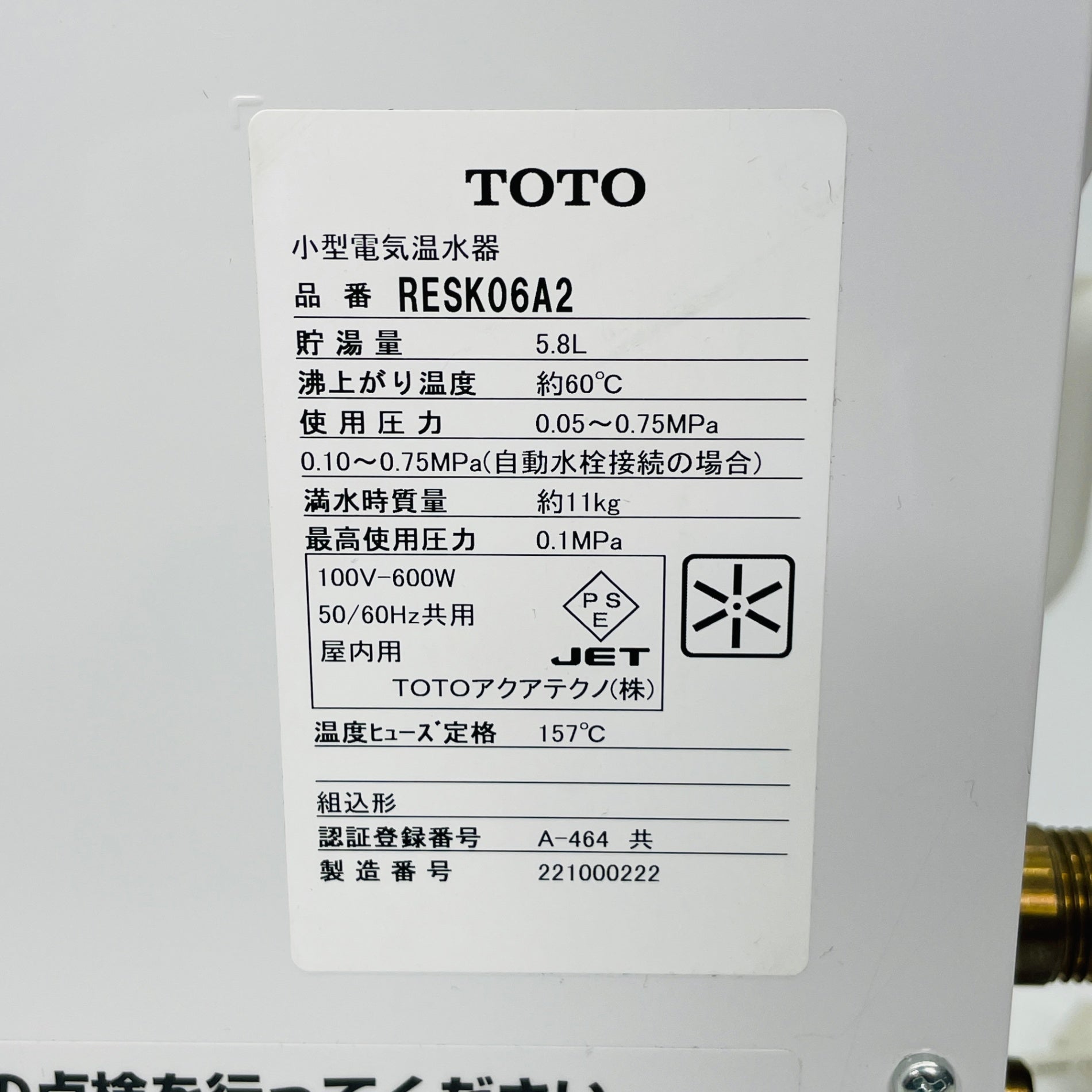 TOTO 小型電気温水器 湯ぽっとキット RESK06A2 【C4666-120】